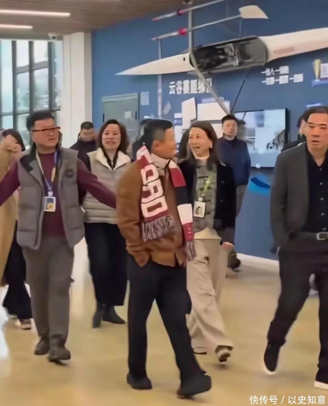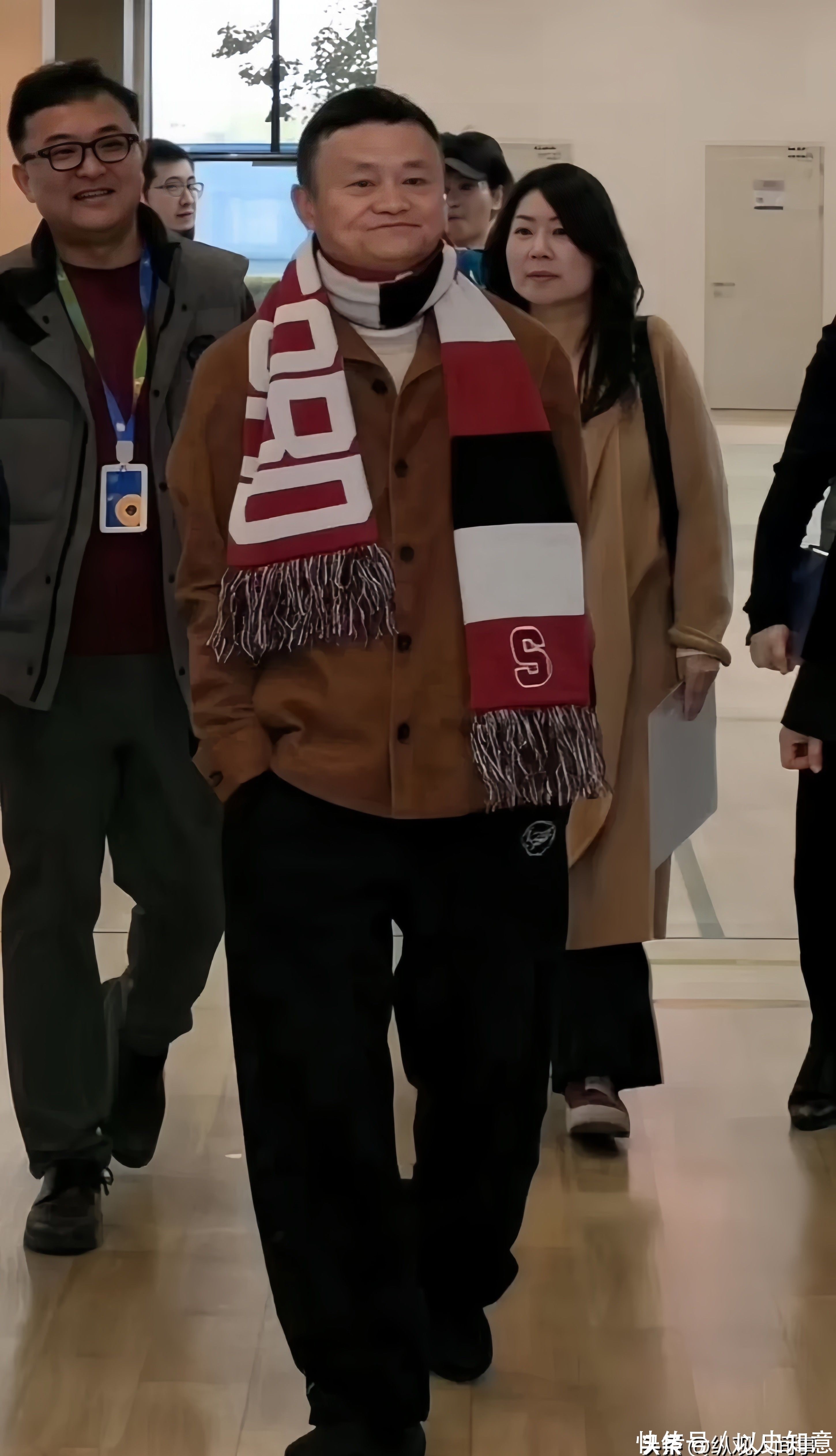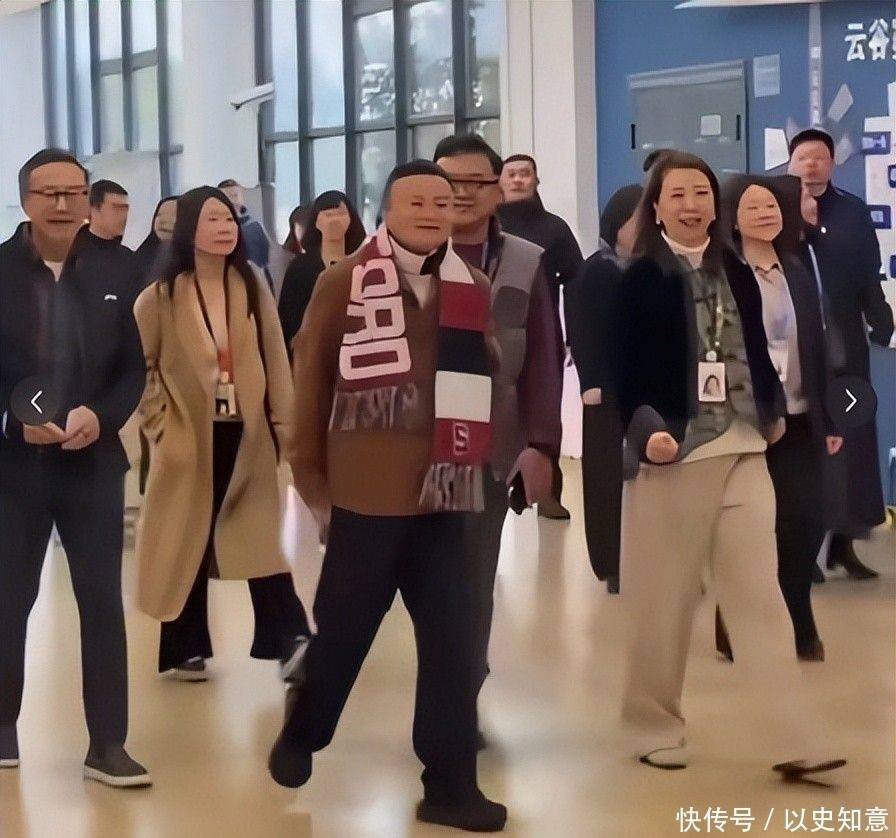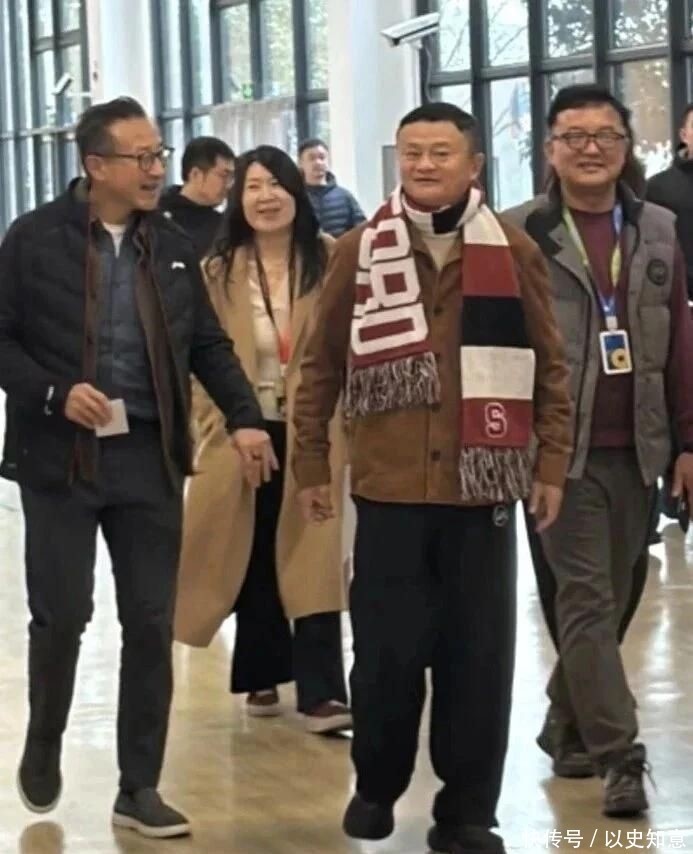 高清生图中,马云身着低调的深灰休闲夹克,颈间系着一条素雅围巾,步伐沉稳有力。