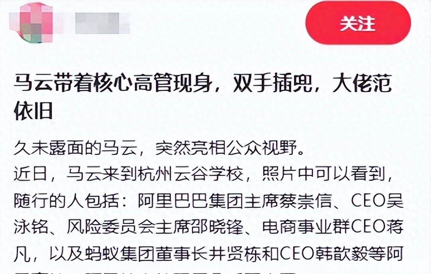 而此次携阿里与蚂蚁高层集体亮相云谷,无疑激起新一轮深度解读:是否预示着他将以全新方式重返舞台中央?