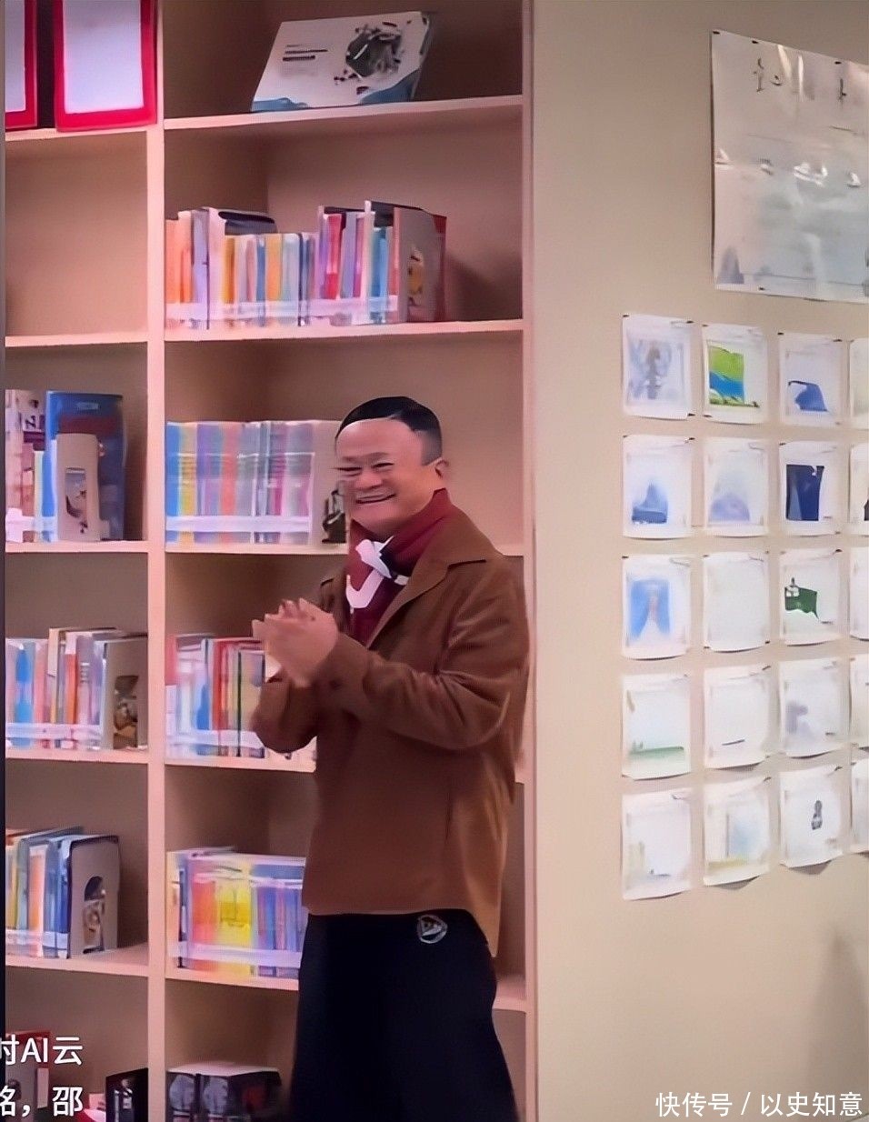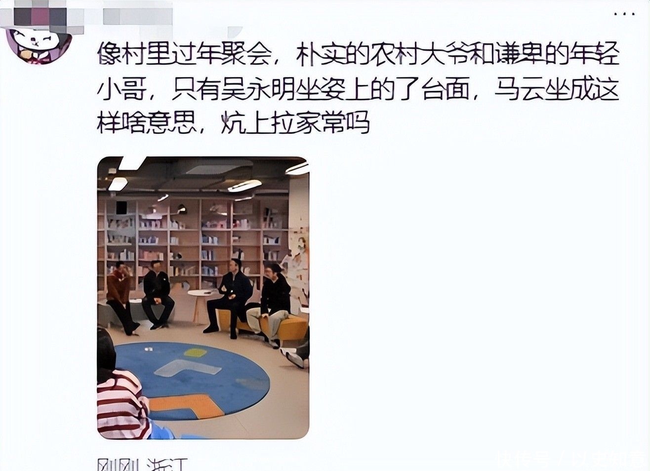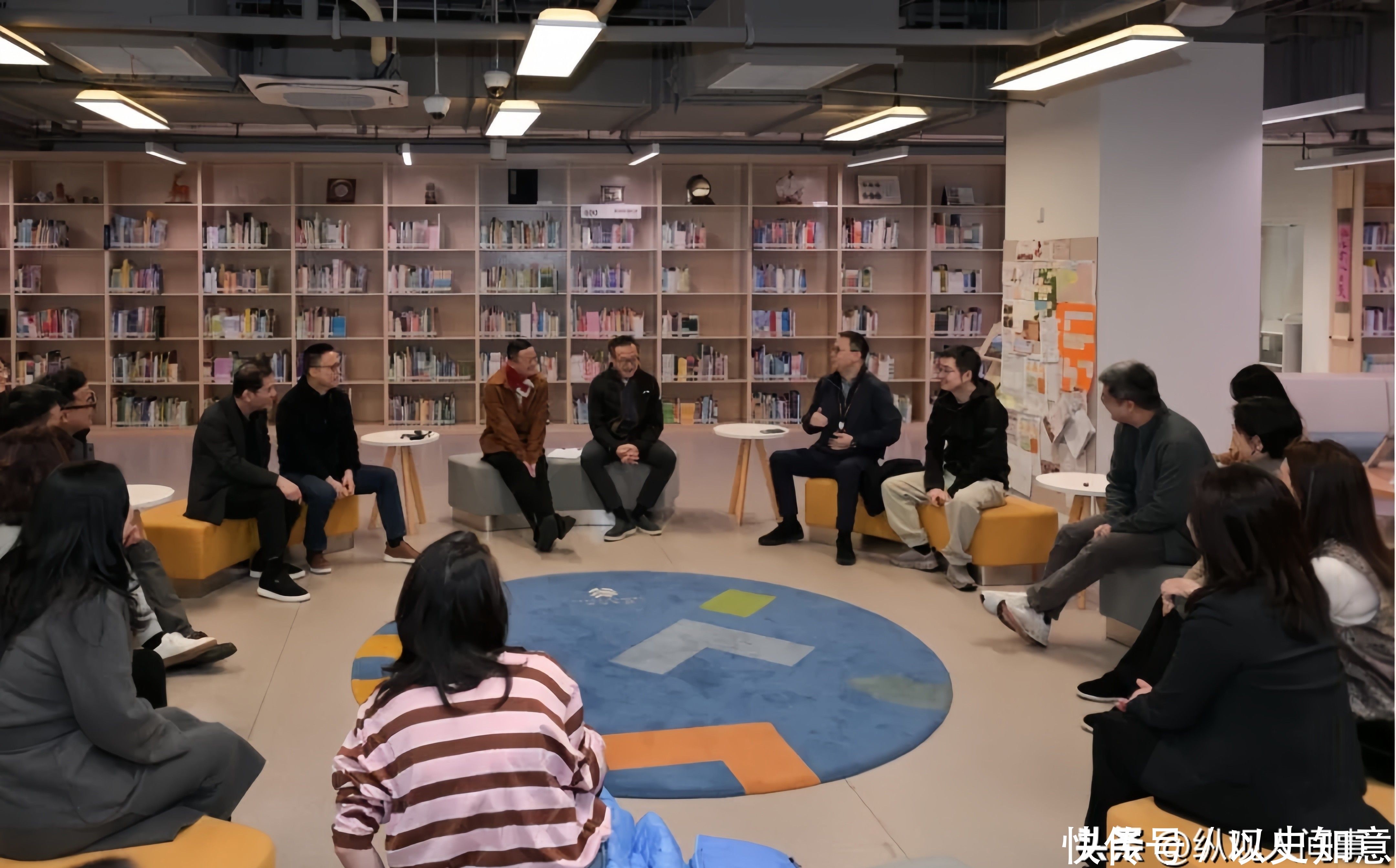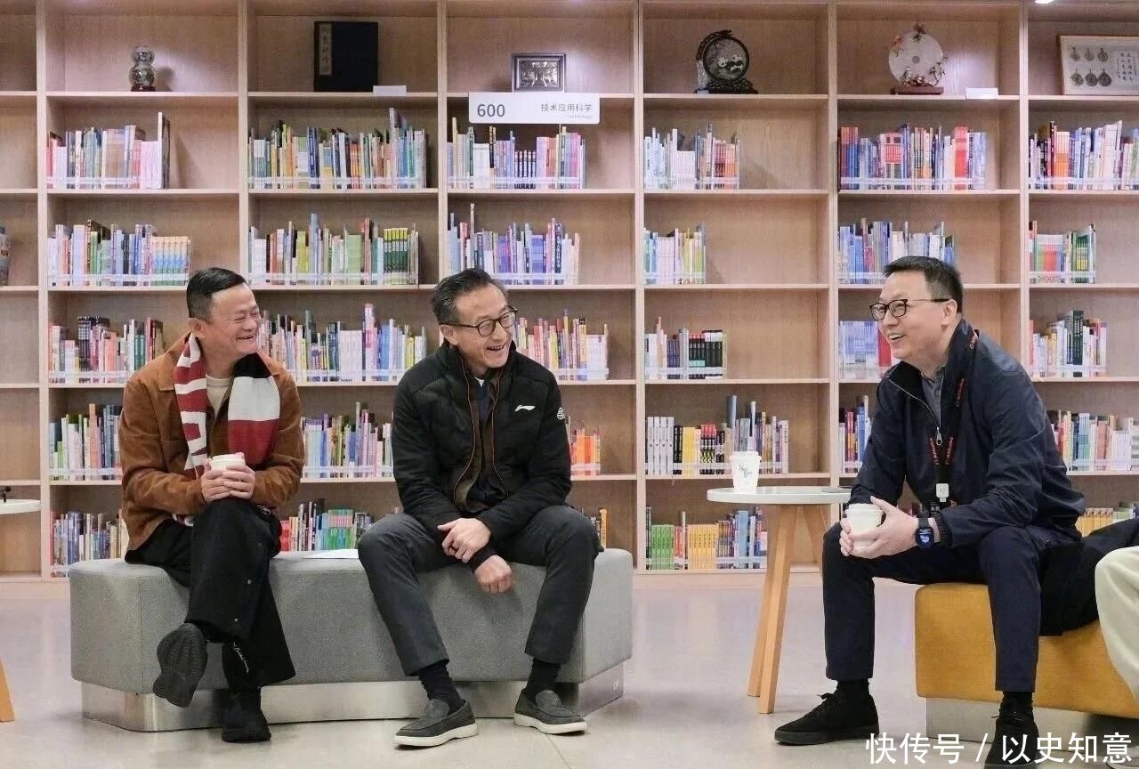 一组现场抓拍意外记录下轻松一幕:马云在图书馆与师生互动时,坐姿格外鲜活自然。