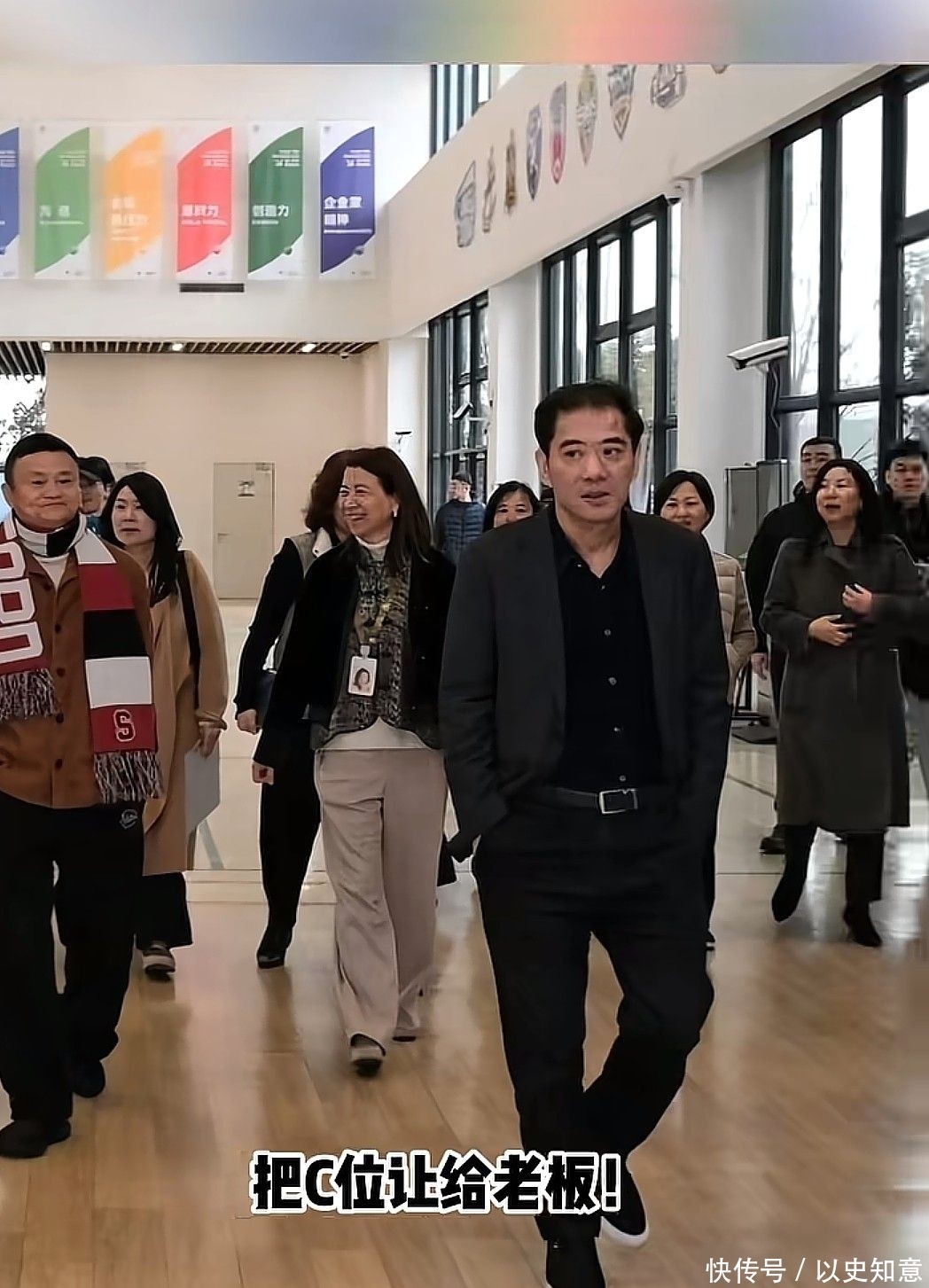 他身披斯坦福标志性围巾、双手自然插兜的姿态依旧气场十足,身后紧随阿里与蚂蚁集团多位关键决策者,阵容庄重而不张扬。