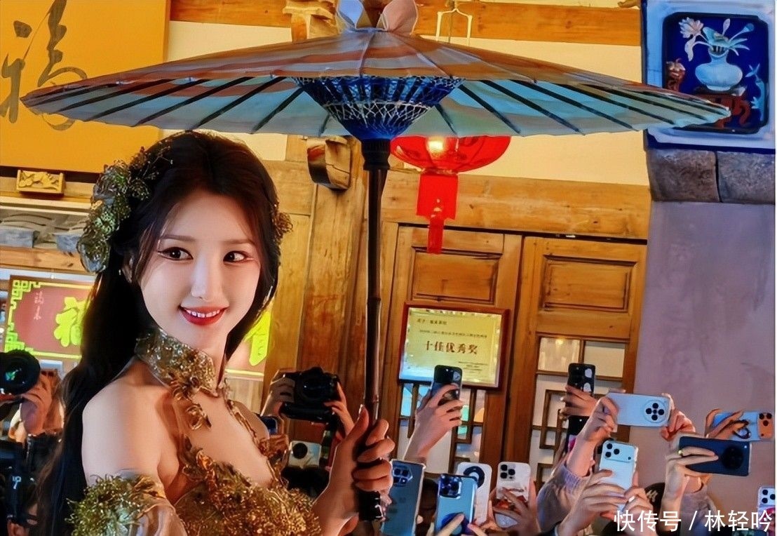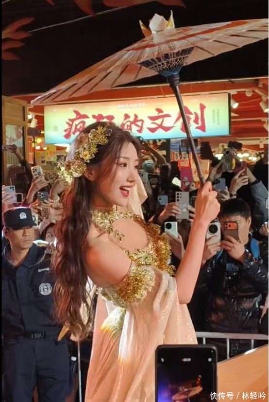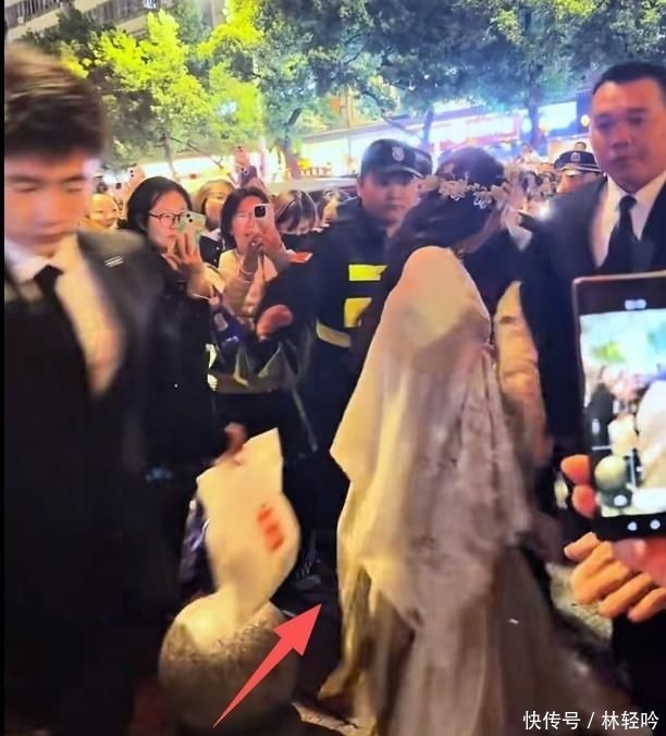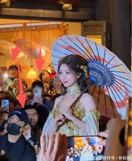当镜头拉远俯拍,密布如织的人群举着手机齐刷刷朝向中央,无数镜头几乎贴至毛晓彤身侧,形成极具压迫感的“围观矩阵”。