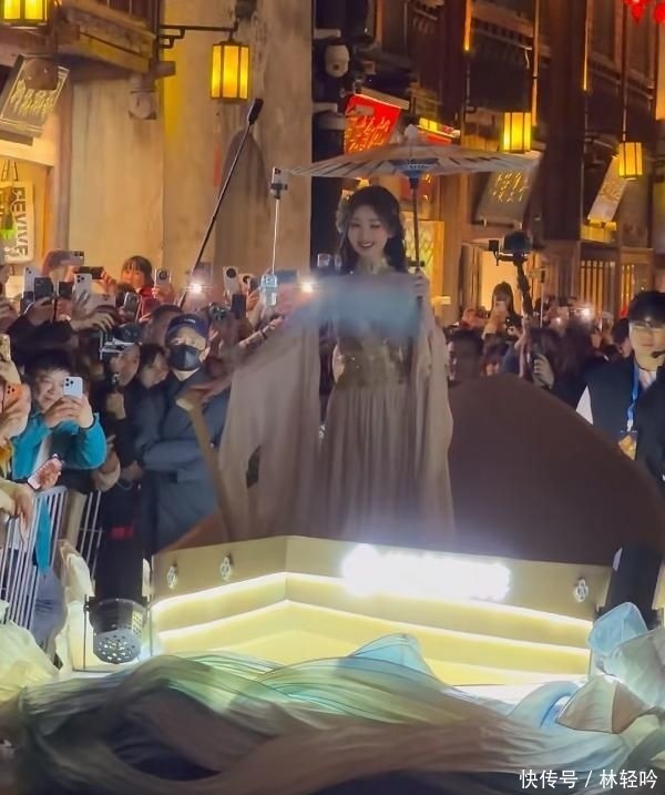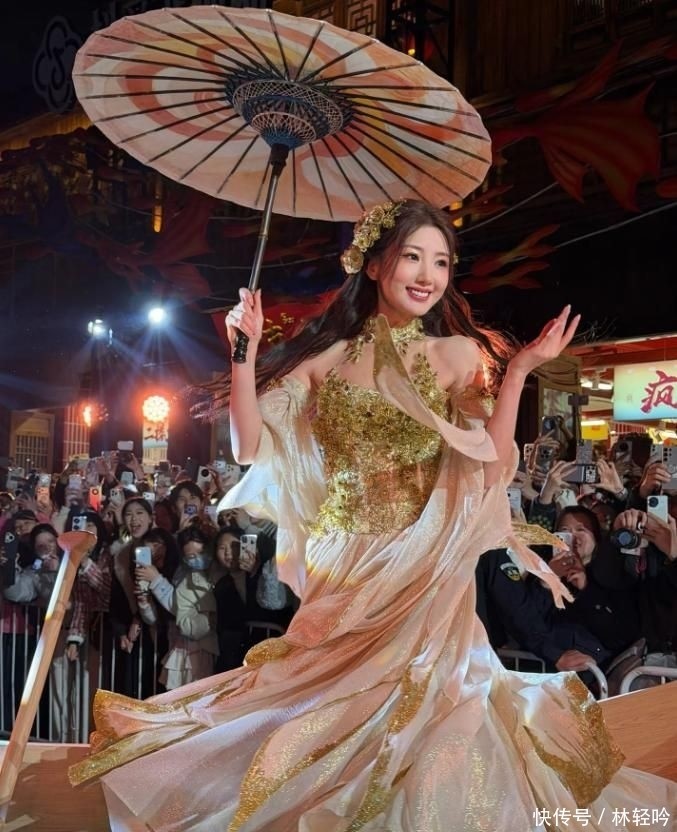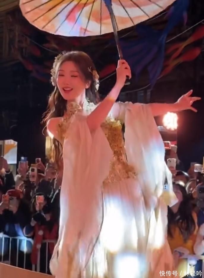 整场巡游过程中,毛晓彤的辨识度始终高于本地民俗表演者。