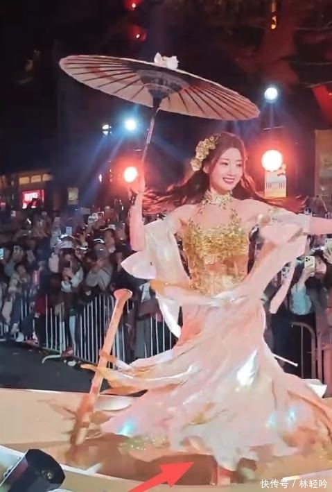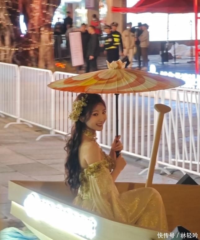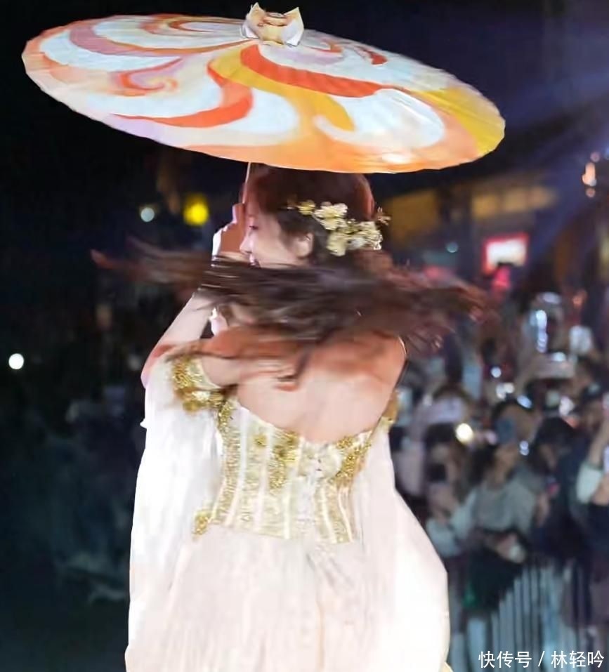 她频繁在船头完成360度旋转动作,并配合踢腿、扬袖等设计强化视觉记忆点,确保每位围观者都能捕捉到她的正脸神态。