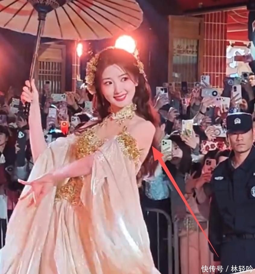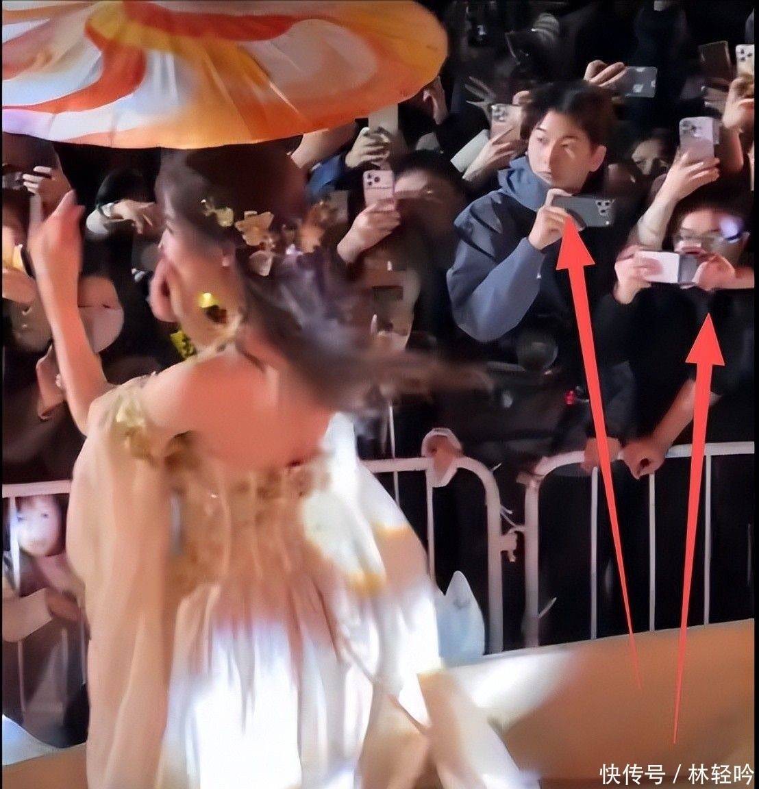 值得注意的是,现场安保执行存在明显疏漏:行进途中一名工作人员失衡前倾,鞋跟直接踩住毛晓彤裙摆下摆,所幸她反应迅捷及时提步,否则极易导致服装撕裂事故。